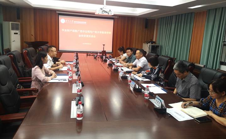 9月22日下午,平安产险广西分公司数据总监谢宇一行3人到院就加强校企合作、人才招聘等方面进行交流洽谈。学院院长郭真华、院党委副书记郭海燕、副院长袁功林,以及信息与计算科学系负责人、辅导员等出席了座谈会。